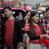 A promotional model distributes lai see packets filled with bitcoin coupons to pedestrians to mark the Chinese New Year in Hong Kong on Jan...
